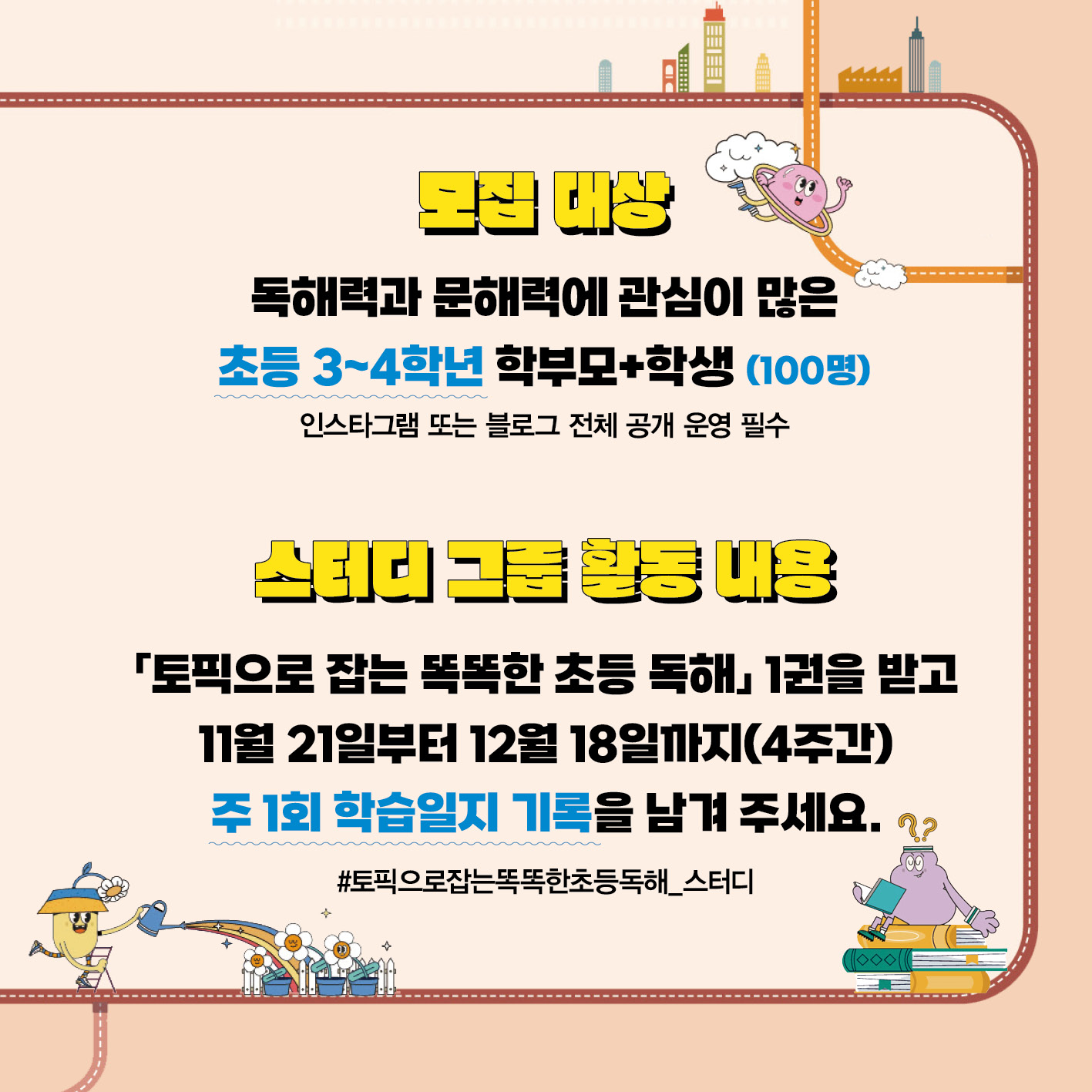 [이벤트종료] 「토픽으로 잡는 똑똑한 초등 독해」 4주 스터디 그룹을 모집합니다.