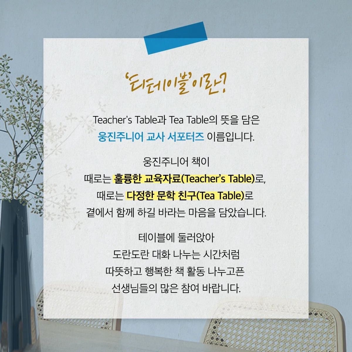 2023년 웅진주니어 교사 서포터즈 「티테이블」 멤버를 모집합니다. :)
