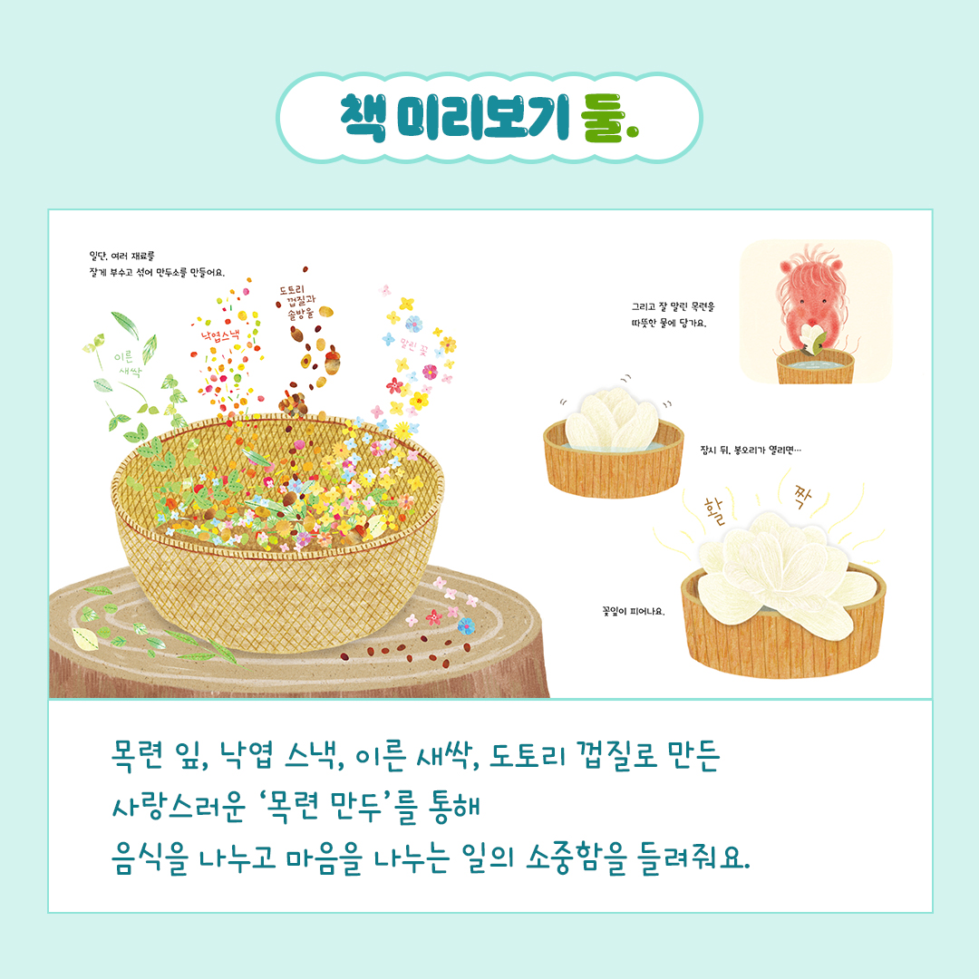 다람쥐는 동물 친구들에게 목련 만두를 만들자고 제안하는데……!