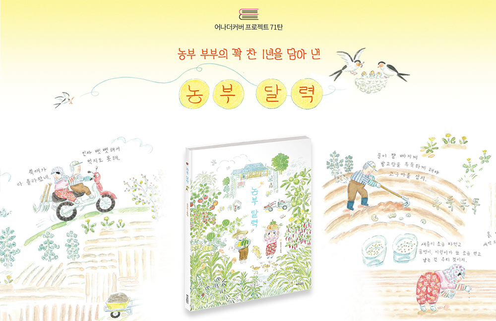 기존 표지가 '달력'에 포인트를 둔 컨셉이었다면, 리커버 작업은 '농부'와 늘 함께하는 '자연'을 김선진 작가의 고유한 화풍을 살려 표지 전면에 구성해 보았습니다.