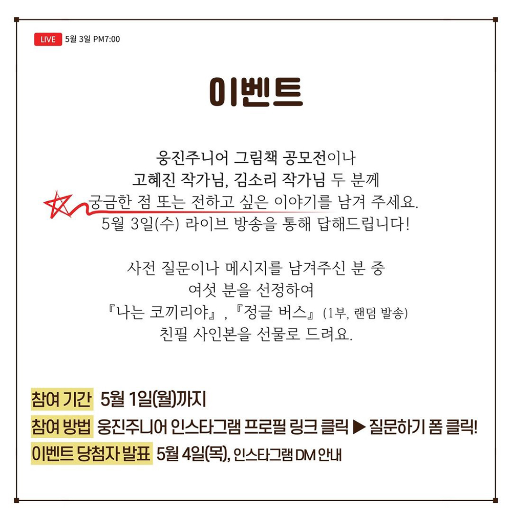 ∎채널: 웅진주니어 인스타그램 (https://www.instagram.com/woongjin_junior/)