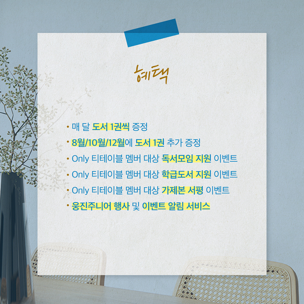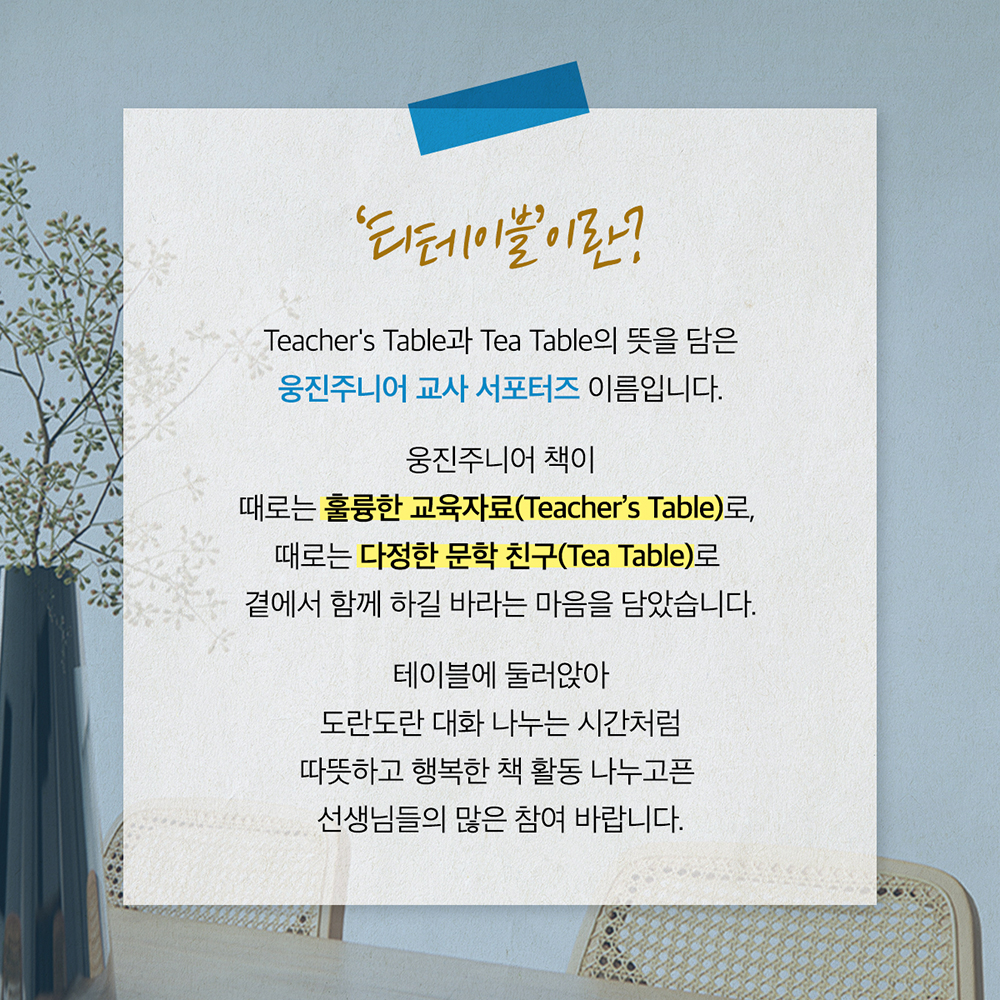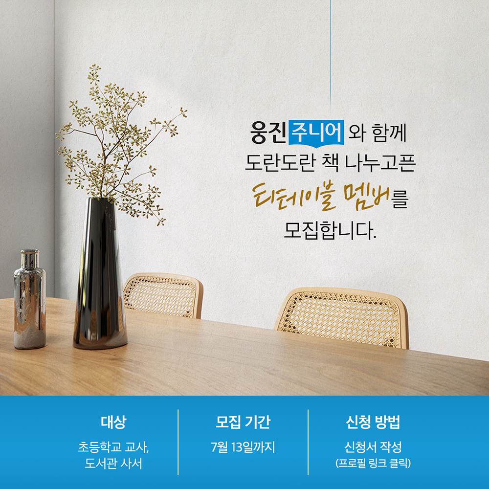 [종료] 2023년 하반기 웅진주니어 교사/사서 서포터즈 '티테이블' 멤버를 모집합니다.(~7/13)