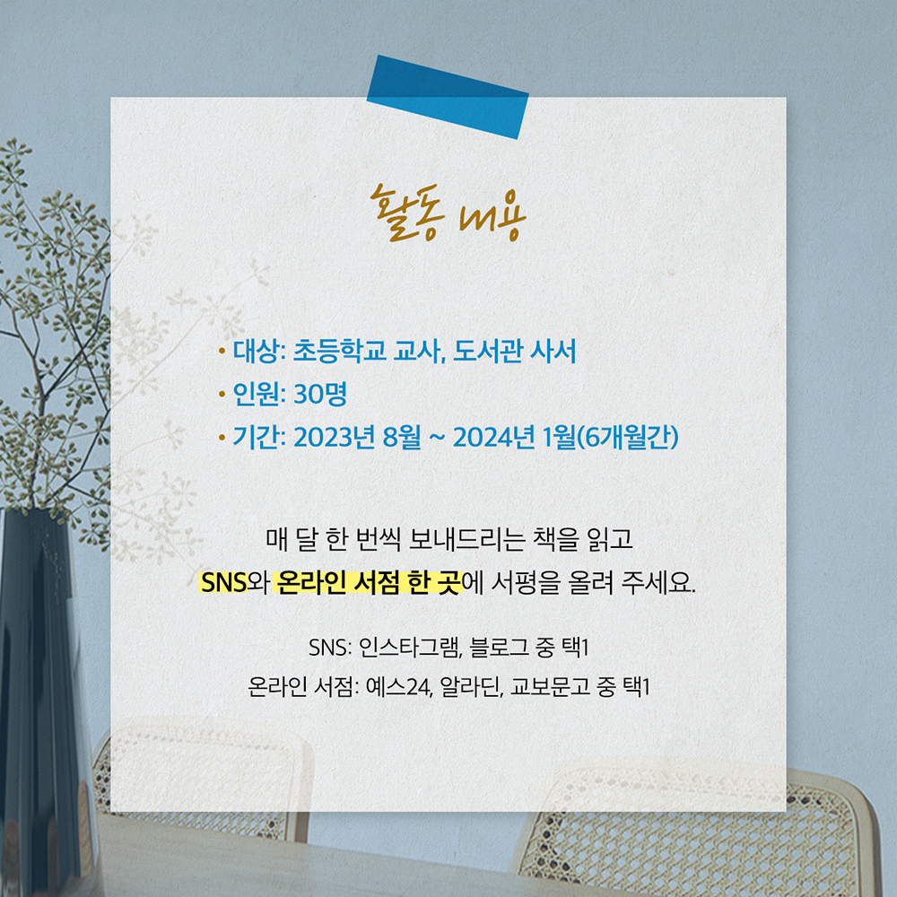 * 모집 대상: 초등학교 교사, 도서관 사서