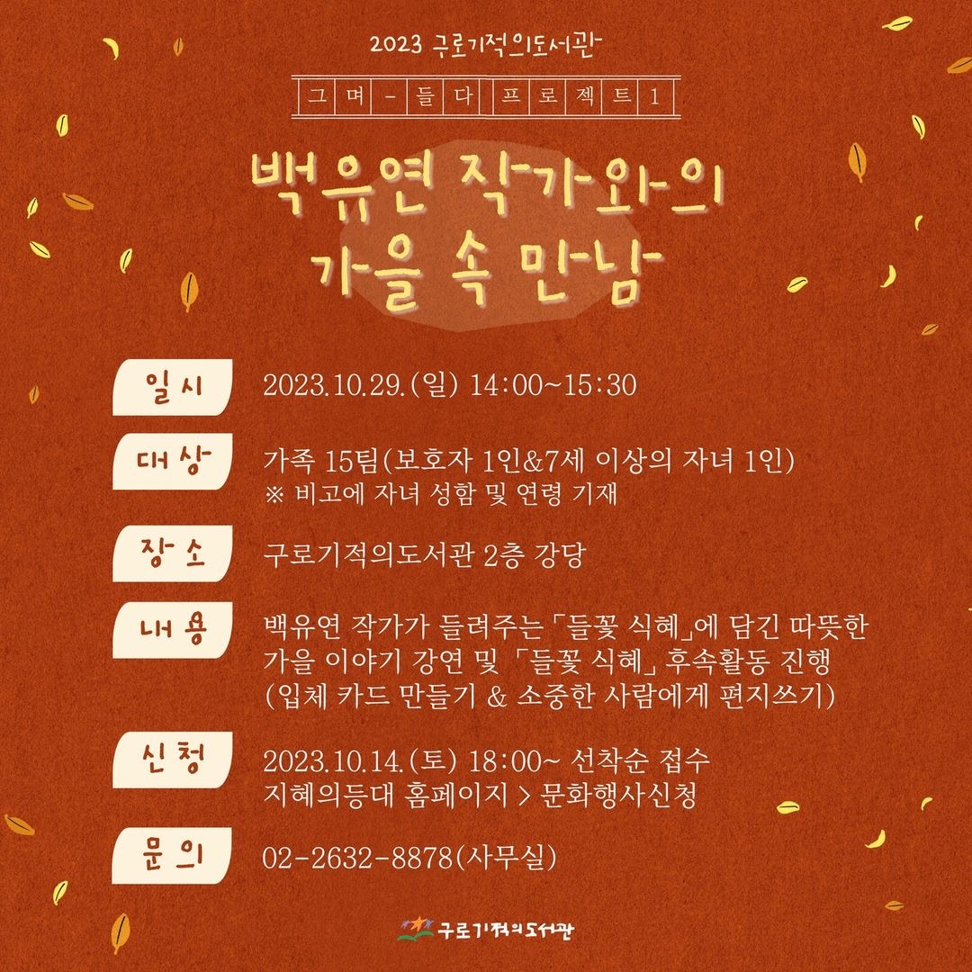 [이벤트] 구로기적의도서관에서 백유연 작가를 만나세요. (10/29)