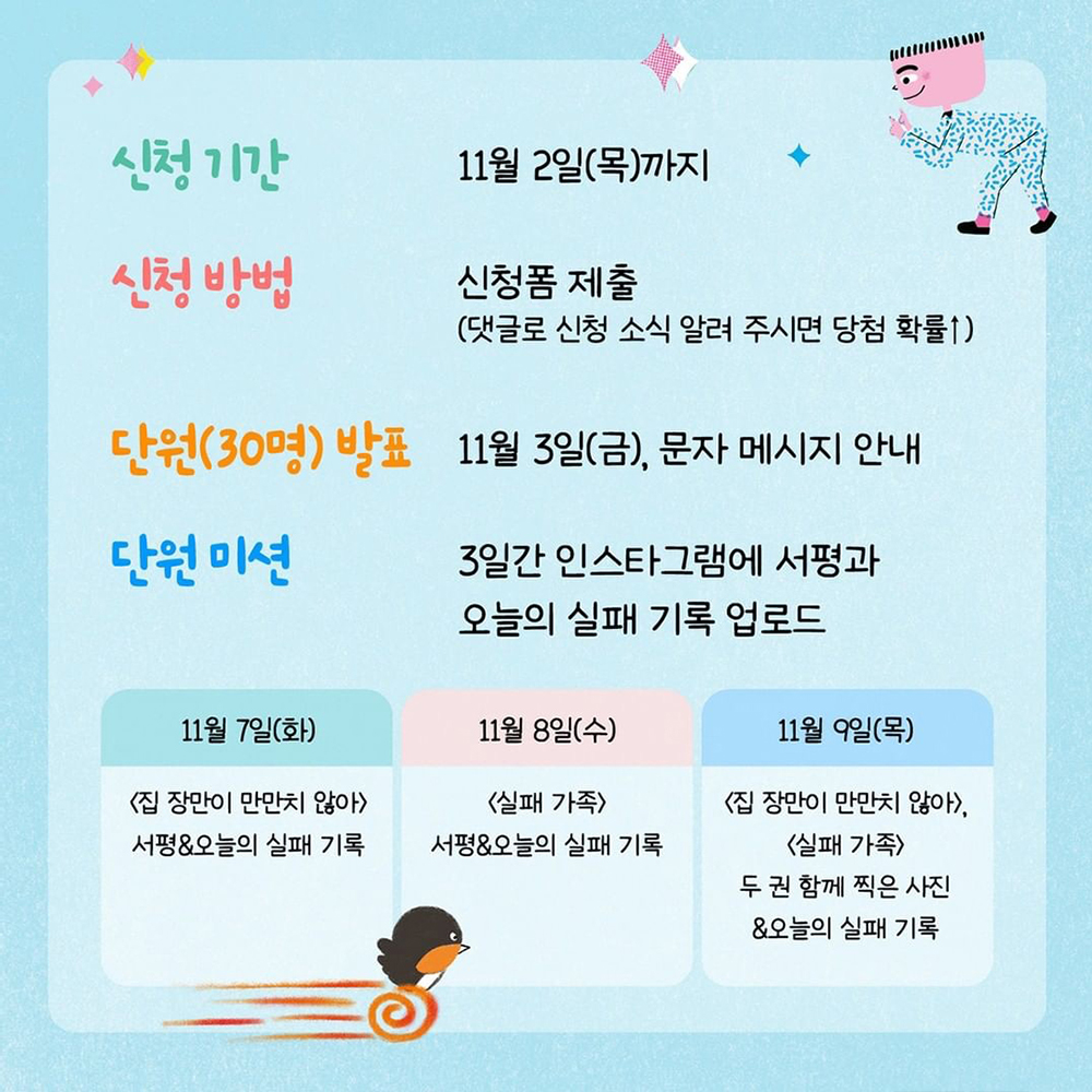 추가로 자신만만 실패단 미션에 참여해 준 분께는 추가 책 선물을 보내드립니다.