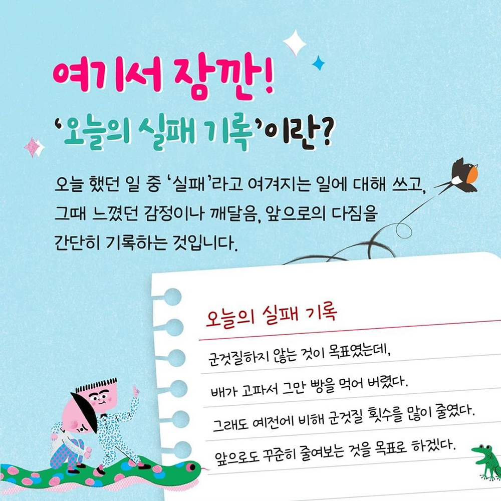 웅진주니어와 함께 『실패 가족』과 『집 장만이 만만치 않아』를 읽고, '오늘의 실패 기록'을 쓰면서 마음을 새로이 가져 보세요.