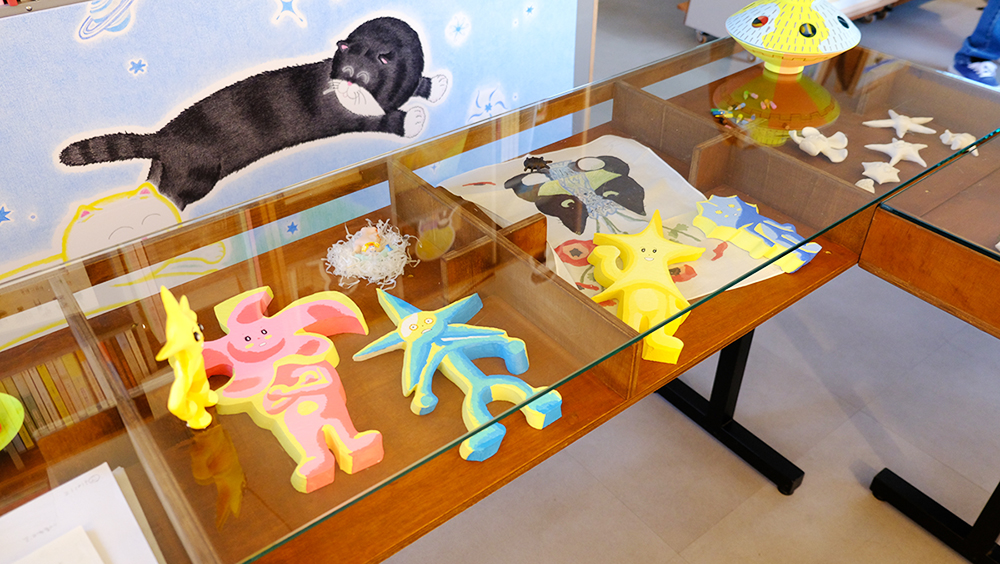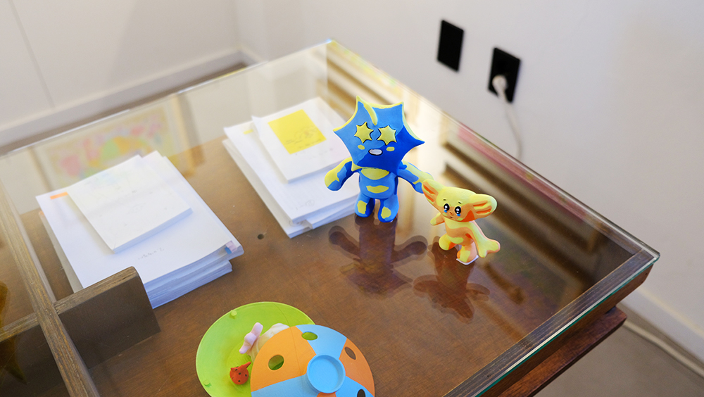 손수 만든 『반짝반짝 비행접시』 속 캐릭터들의 입체물들.
