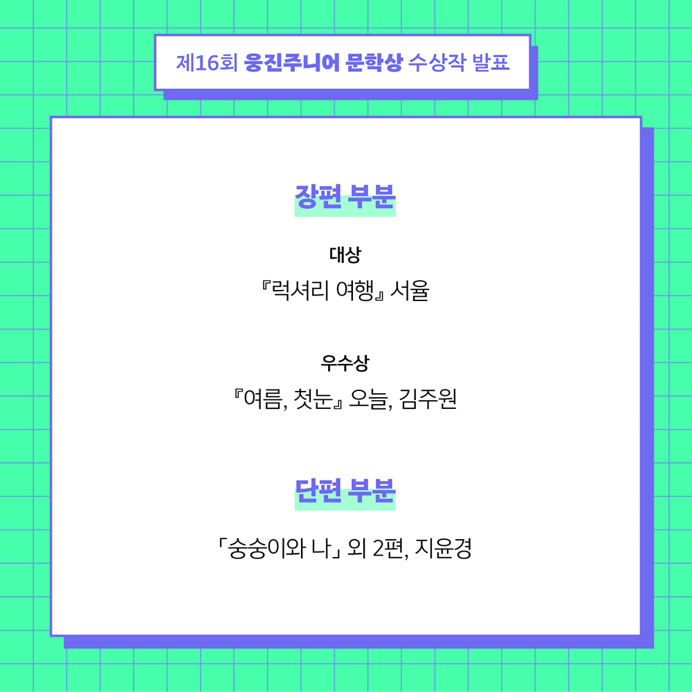 제16회 웅진주니어 문학상, 제7회 웅진주니어 그림책상