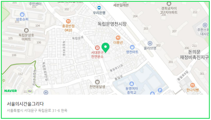 서울특별시 서대문구 독립문로 31-6 한옥 (영천시장 안쪽으로 오시면 찾기 쉬워요.)