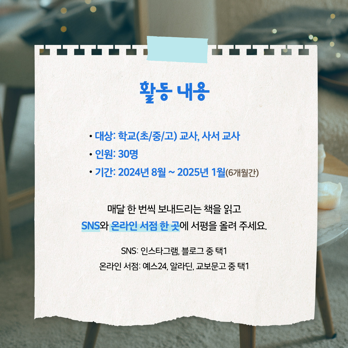 * 모집 대상: 학교 교사, 도서관 사서 교사