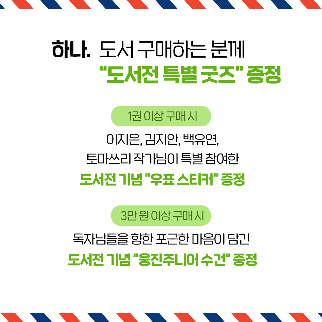- 1권 이상 구매 시: 도서전 기념 "우표 스티커" 증정