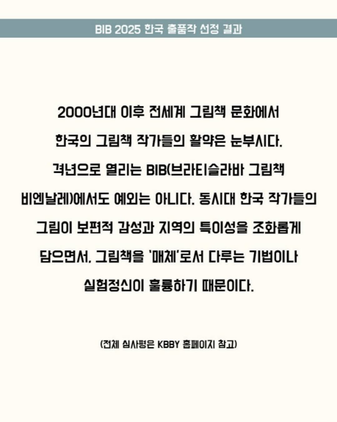 BIB 2025 한국 출품작으로 선정됐습니다!