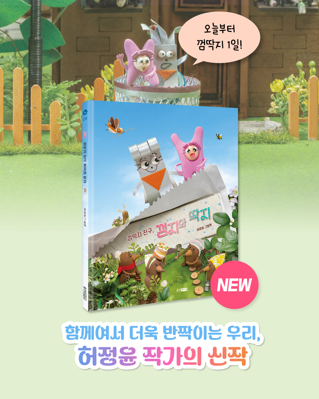 허정윤 작가 신작 『껌딱지 친구, 껌지와 딱지』.